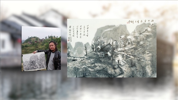 何加林外出寫生作品《酒鄉(xiāng)古寨》
