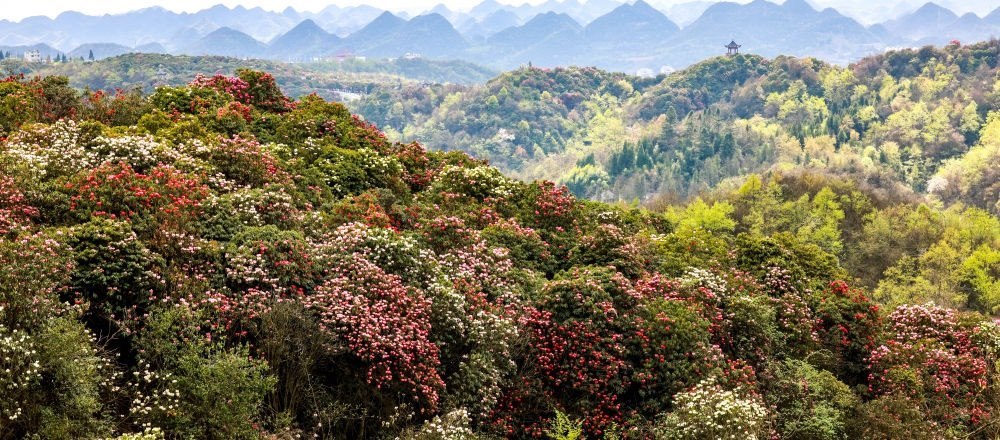 地處貴州畢節(jié)的百里杜鵑風(fēng)景名勝區(qū),每年花開時(shí)節(jié)都會(huì)吸引游客前來觀賞。此處綿延分布了125.8平方公里的原始杜鵑林帶,是國家5A級(jí)旅游景區(qū)。
