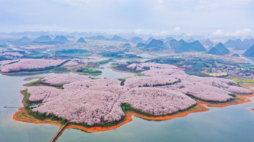 在貴安新區(qū)櫻花園,櫻花競相盛開,游人如織。該園占地面積2.4萬余畝,種植了近70萬株名貴櫻花,是目前世界上集中連片種植面積最大的櫻花基地。