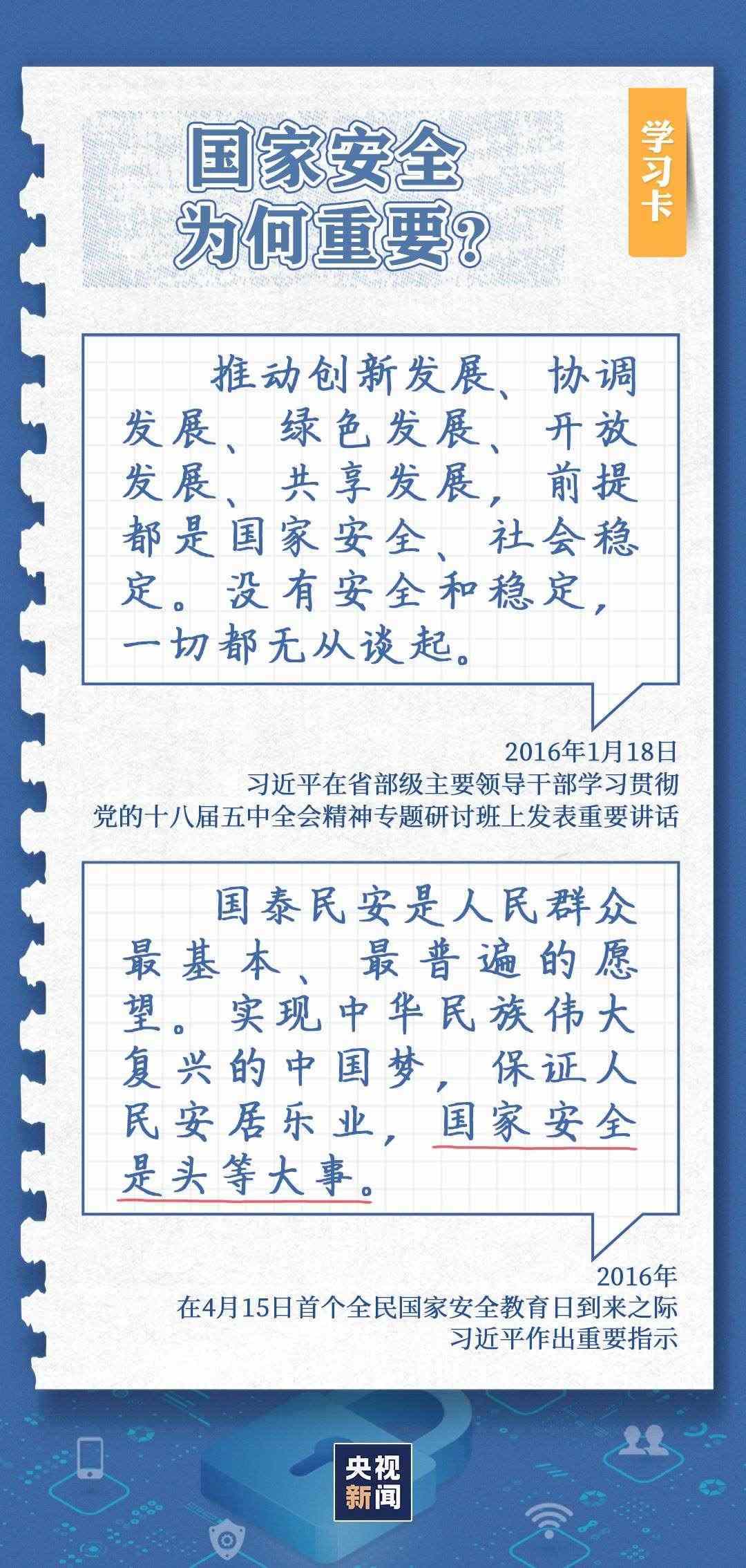 今天(4月15日)是習(xí)近平總書記首次提出總體國家安全觀9周年,也是全民國家安全教育日。“安而不忘危,存而不忘亡,治而不忘亂。”總書記在不同場合多次強調(diào),國家安全是國家發(fā)展的最重要基石、人民福祉的最根本保障。
