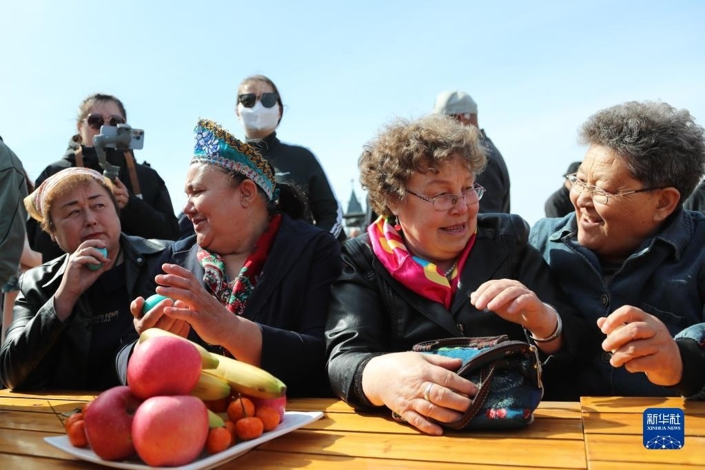 當(dāng)日,內(nèi)蒙古呼倫貝爾市額爾古納市恩和俄羅斯族民族鄉(xiāng)的俄羅斯族群眾穿著鮮艷的民族服飾,載歌載舞,歡度巴斯克節(jié)。已被列入國(guó)家級(jí)非物質(zhì)文化遺產(chǎn)名錄的巴斯克節(jié)是俄羅斯族一年中最隆重的節(jié)日,在為期一周的節(jié)日里,當(dāng)?shù)厝罕娖穱L美食、互相撞彩蛋、參加拔河、搶棍等活動(dòng)。