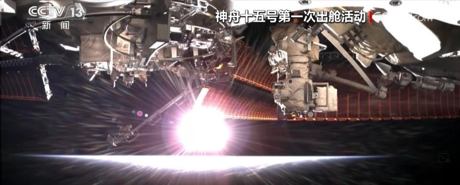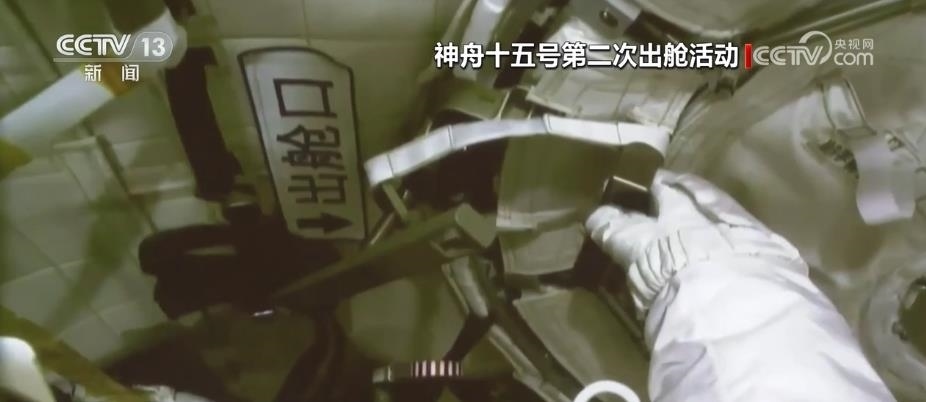 航天員費(fèi)俊龍打開出艙艙門,成功出艙。