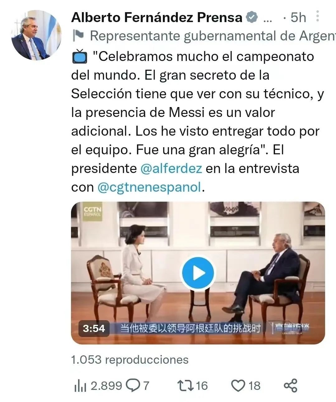 △阿根廷總統(tǒng)費爾南德斯個人賬號發(fā)布十余條推文展示專訪內(nèi)容