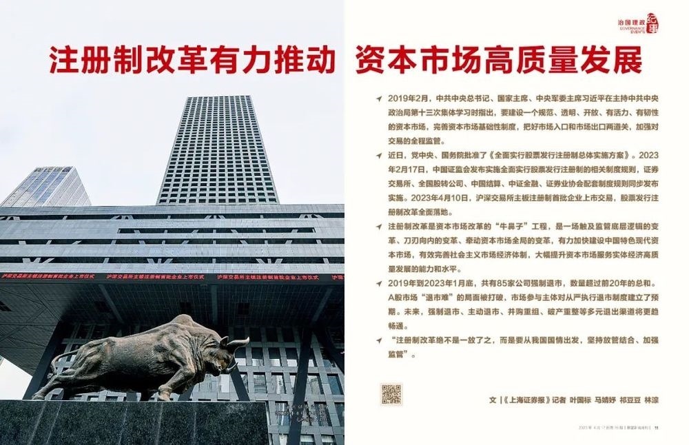 ◆ 注冊制改革是資本市場改革的“牛鼻子”工程,是一場觸及監(jiān)管底層邏輯的變革、刀刃向內(nèi)的變革、牽動資本市場全局的變革,有力加快建設中國特色現(xiàn)代資本市場,有效完善社會主義市場經(jīng)濟體制,大幅提升資本市場服務實體經(jīng)濟高質(zhì)量發(fā)展的能力和水平。