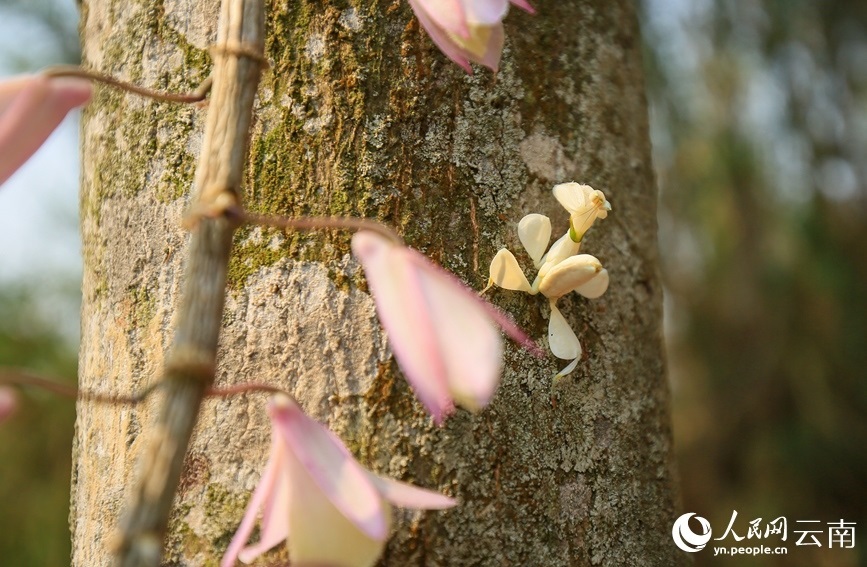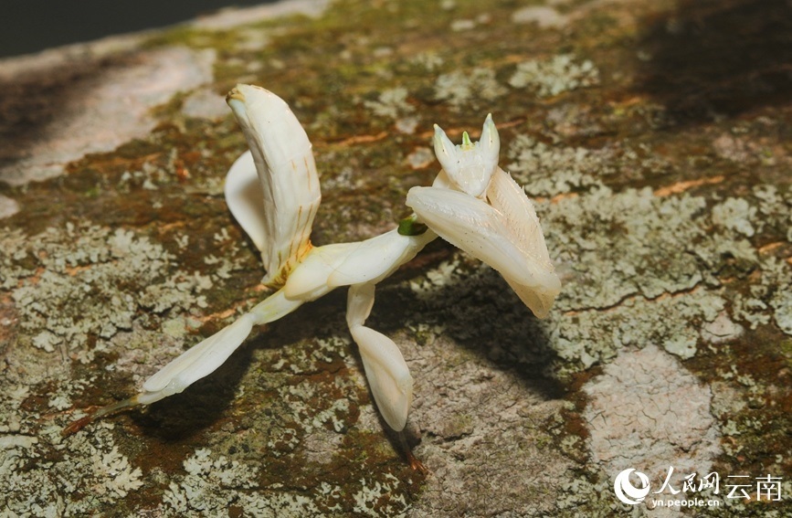 寧洱縣同心鎮(zhèn)林業(yè)和草原服務(wù)中心主任楊夢醒介紹,經(jīng)鑒定,這只白色的蟲子是昆蟲綱花螳科的一種動物,名為蘭花螳螂,是螳螂目中最為漂亮的一種,比較稀有?!拔覀兺ㄟ^查閱資料發(fā)現(xiàn),蘭花螳螂在寧洱縣并無記錄,這次是首次發(fā)現(xiàn)。”