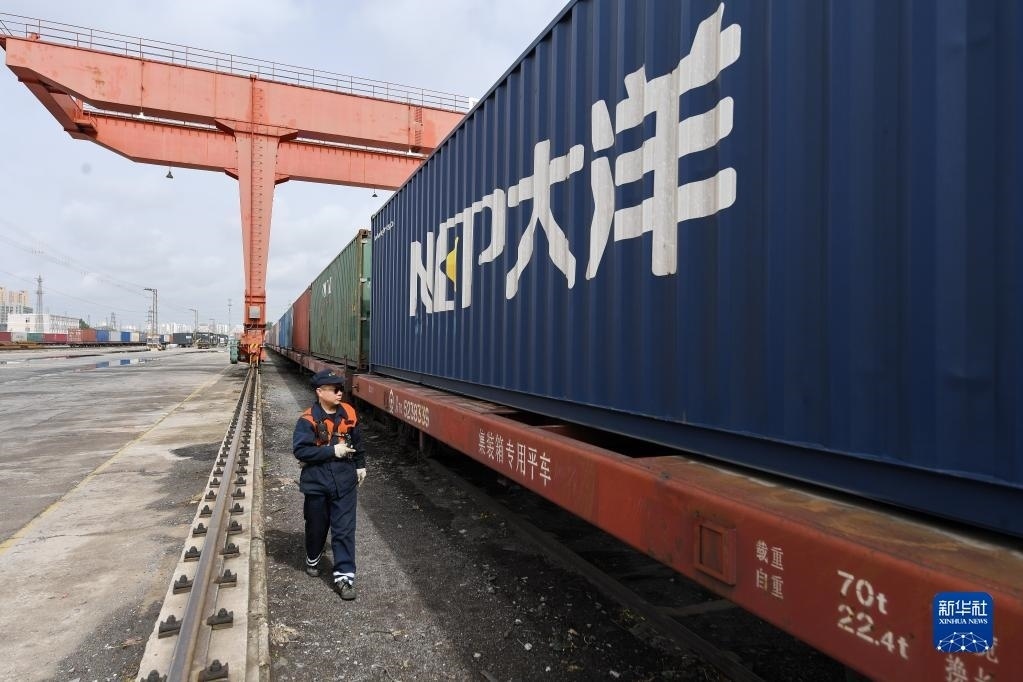 4月28日,班列駛出廊坊北鐵路貨場(chǎng)。