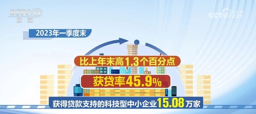 2023年一季度末,獲得貸款支持的科技型中小企業(yè)15.08萬家,獲貸率45.9%,比上年末高1.3個百分點。科技型中小企業(yè)貸款余額1.76萬億元,同比增長25.2%,比上年末高0.9個百分點。