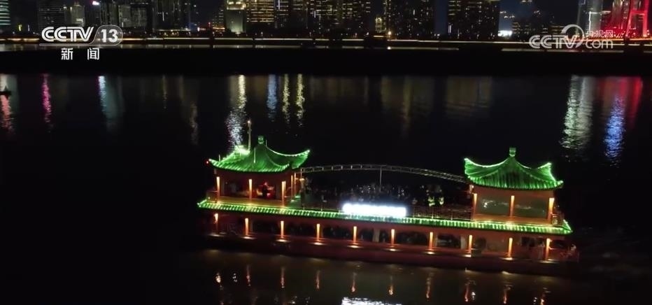 游客們乘船順流而下,一幅“山水洲城”的都市畫(huà)卷在眼前徐徐鋪展。