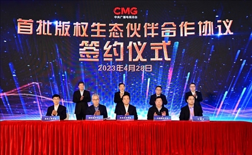 4月28日,以“共融共生 共創(chuàng)未來(lái)”為主題的中央廣播電視總臺(tái)首屆版權(quán)生態(tài)合作大會(huì)在上海舉行。中宣部副部長(zhǎng)、中央廣播電視總臺(tái)臺(tái)長(zhǎng)慎海雄,上海市委常委、宣傳部部長(zhǎng)趙嘉鳴出席,并與中國(guó)版權(quán)協(xié)會(huì)理事長(zhǎng)閻曉宏、總臺(tái)編務(wù)會(huì)議成員彭健明共同見(jiàn)證總臺(tái)首批版權(quán)生態(tài)伙伴簽約。