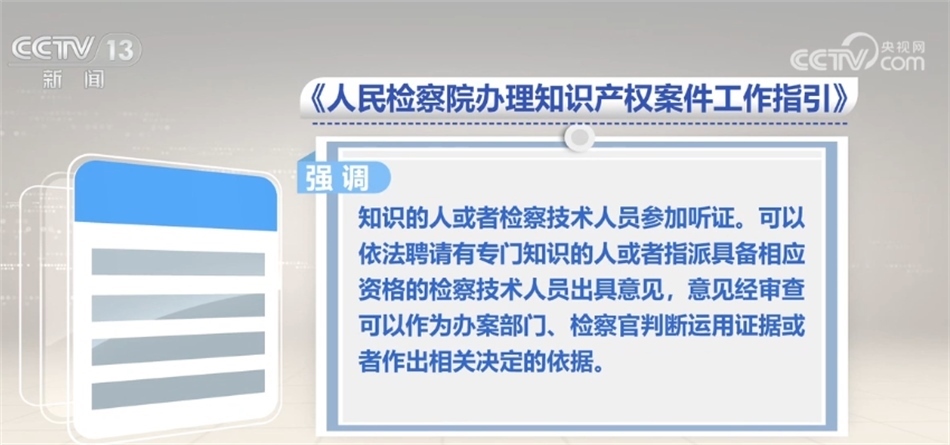 央視網消息:最高人民檢察院昨天(4月26日)發(fā)布了《人民檢察院辦理知識產權案件工作指引》,對知識產權刑事案件、民事和行政訴訟監(jiān)督案件以及公益訴訟案件的辦理等方面分別作出了規(guī)定。