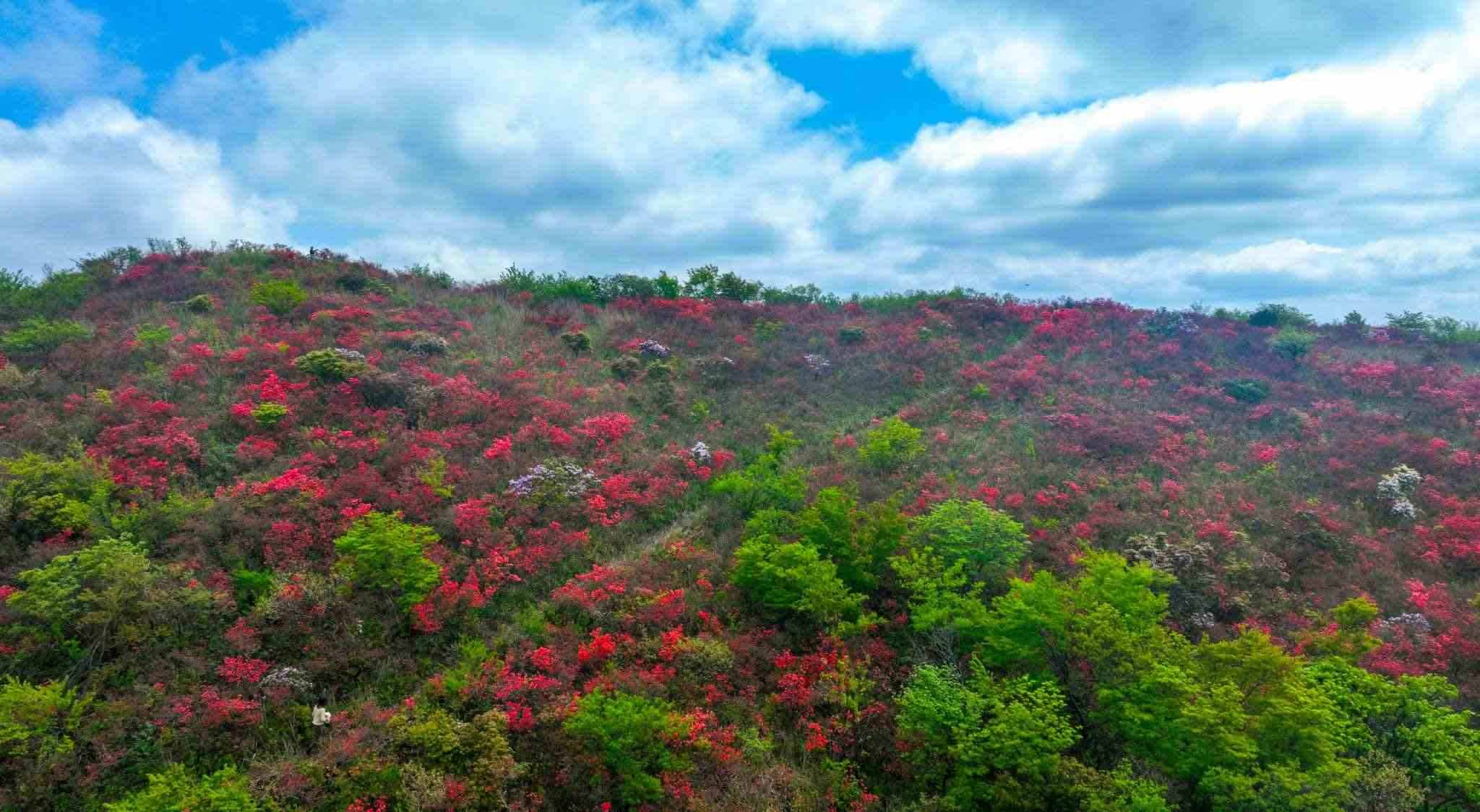 2023年4月26日,杭州,淳安縣楓樹(shù)嶺鎮(zhèn)白馬乳洞山自然村,海拔1320米的黃茅尖上千畝野生杜鵑花開(kāi)正艷。視覺(jué)中國(guó)