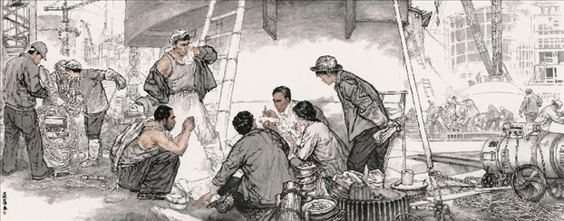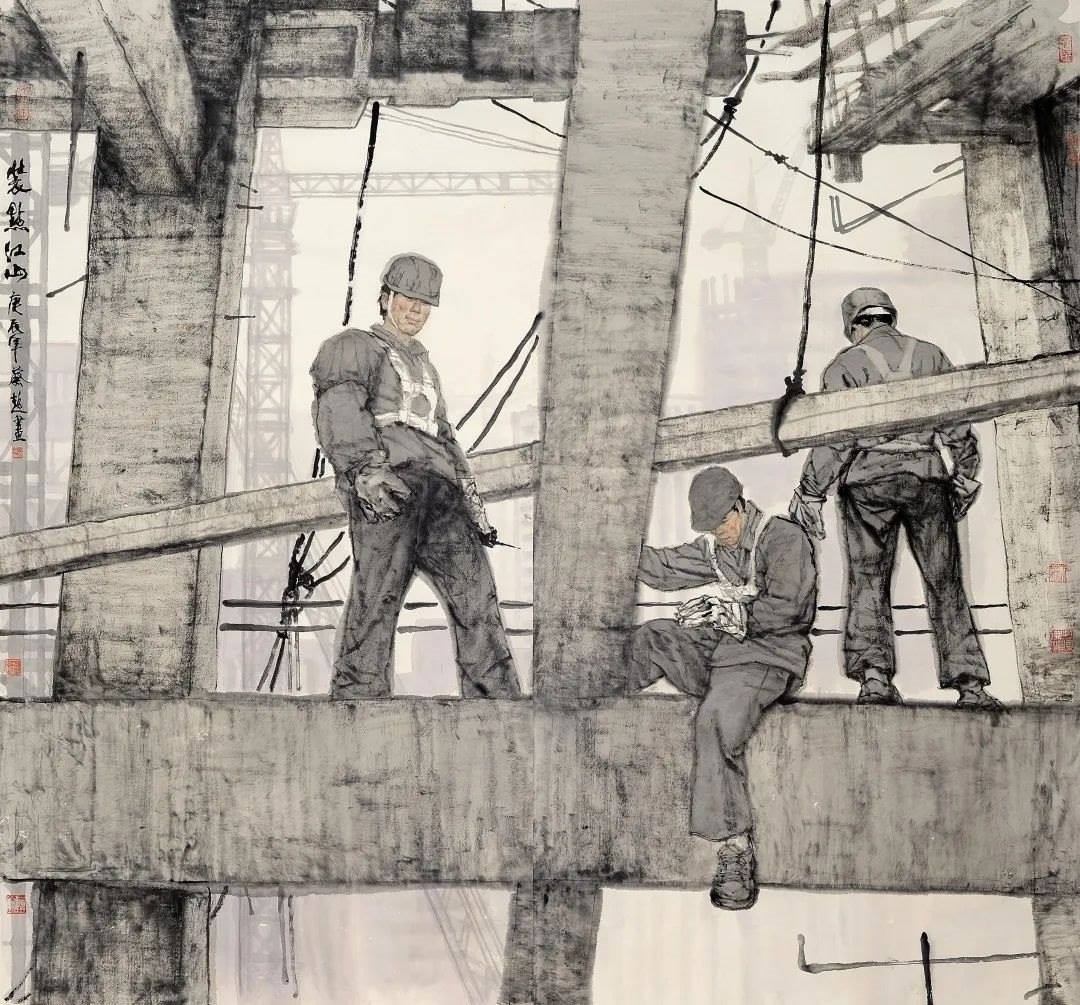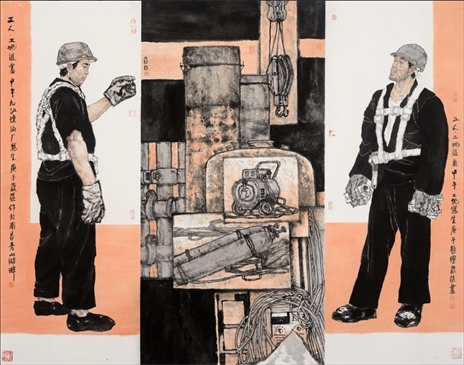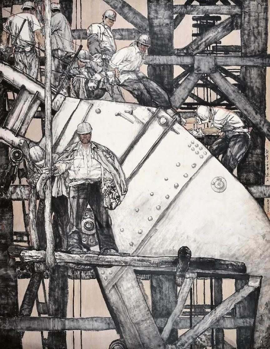 對(duì)傳統(tǒng)現(xiàn)實(shí)主義的繼承和拓展。作為一位具備卓越造型能力的人物畫家,蔡超始終堅(jiān)持深入現(xiàn)實(shí)生活,他以敏銳的觀察力和理解力,以豐富的人生閱歷不斷從生活中提煉創(chuàng)作母題,發(fā)掘常人所不易察覺的藝術(shù)趣味。因此,蔡超筆下的人物總是葆有鮮活的生命和氣息,他們不是空洞的“人民”,而是牢固與地氣相接,與時(shí)代共呼吸的真正的“人民”,他創(chuàng)造了嶄新的屬于贛鄱大地的人民形象,這是蔡超對(duì)于江西現(xiàn)實(shí)主義繪畫創(chuàng)作最重要的貢獻(xiàn)。同時(shí),蔡超不僅繼承了徐悲鴻、蔣兆和以來中國人物畫創(chuàng)作的優(yōu)良傳統(tǒng),更以“筆墨當(dāng)隨時(shí)代”的勇氣和魄力,在工業(yè)題材領(lǐng)域樹立了令人耳目一新的繪畫范式——這是一個(gè)前無古人的偉大突破。
