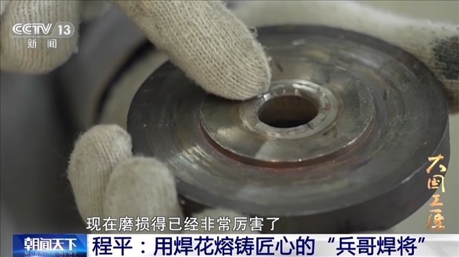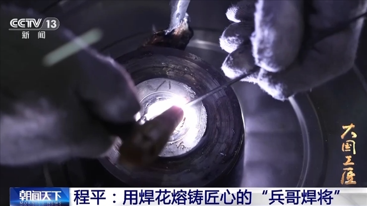 因為位置受限,程平只能半跪著,焊接過程中,艙體隨著風速的變化會晃動,幅度忽大忽小,程平必須屏住呼吸,緊緊靠住機艙壁,在身體晃動的同時,保證焊槍在寬度不到2厘米的U形槽里小幅擺動。每焊接30毫米,立刻進行一次錘擊。這樣反復地焊接、錘擊,6個小時后,焊接終于順利完成。100多米高空中,配件牢牢地和卡鉗底座長在了一起。