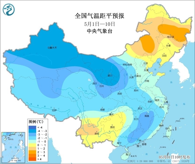 未來10天,除內蒙古中東部、東北地區(qū)及云貴高原平均氣溫較常年同期偏高1℃左右外,全國其余大部分地區(qū)平均氣溫較常年同期偏低1~2℃,其中新疆、甘肅、內蒙古西部等地的部分地區(qū)偏低3℃以上。