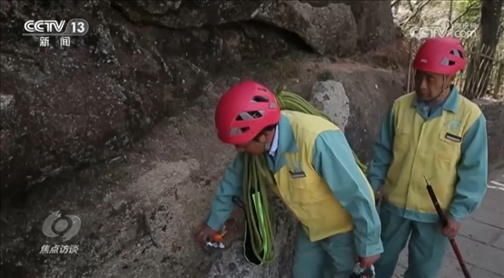 李培生:“放繩索是我們的本職工作,我們要把本職工作做好,不管哪里有垃圾,放得再長、再險的地方,我們只要看到垃圾,就必須去撿起來,我們要把黃山保護(hù)好?!?/p>