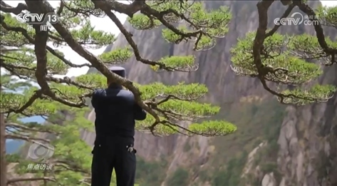 寒來暑往,在游客的眼里,迎客松始終蒼翠挺拔,在這背后,除了守松人,還有黃山風(fēng)景區(qū)一代又一代的工作人員不間斷地付出。2016年,吳貽軍從安徽農(nóng)大博士畢業(yè)后,來到黃山從事古樹名木、生態(tài)資源保護(hù)工作。他和同事一起研發(fā)了不少新技術(shù)、新材料,使黃山古松抗擊自然災(zāi)害的能力大幅提升。