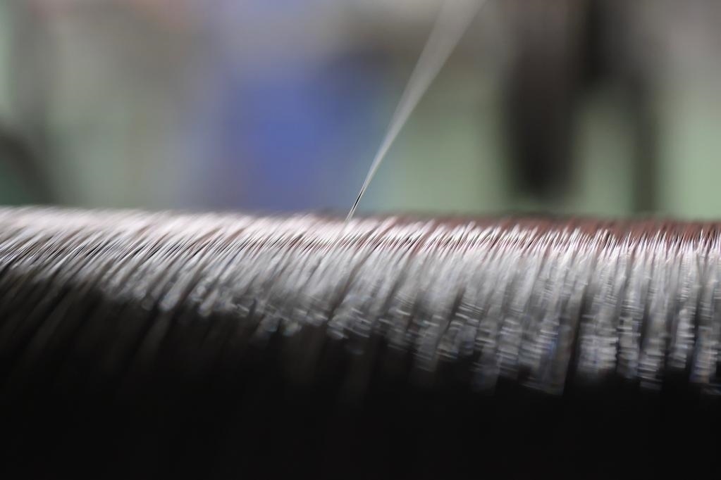 這是4月18日在貴州鋼繩股份有限公司拍攝的0.6毫米直徑鋼絲繩。新華社記者 崔曉強 攝