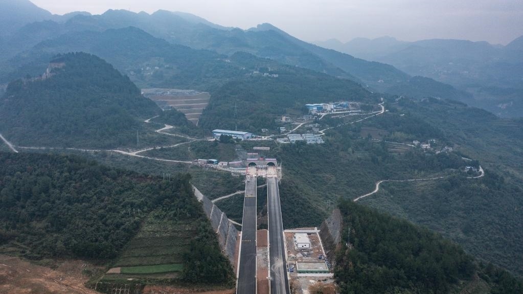 這是2022年10月13日拍攝的蘭州至海口國家高速公路重慶至遵義段(貴州境)擴容工程項目桐梓隧道。當(dāng)日,桐梓隧道右幅順利貫通。新華社記者 陶亮 攝