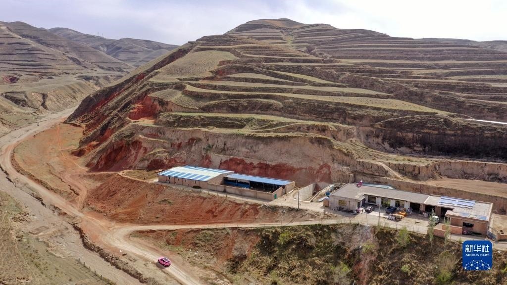 白婳開著粉色的汽車行駛在山路上,上門為養(yǎng)殖戶的??床。?月18日攝,無人機照片)。