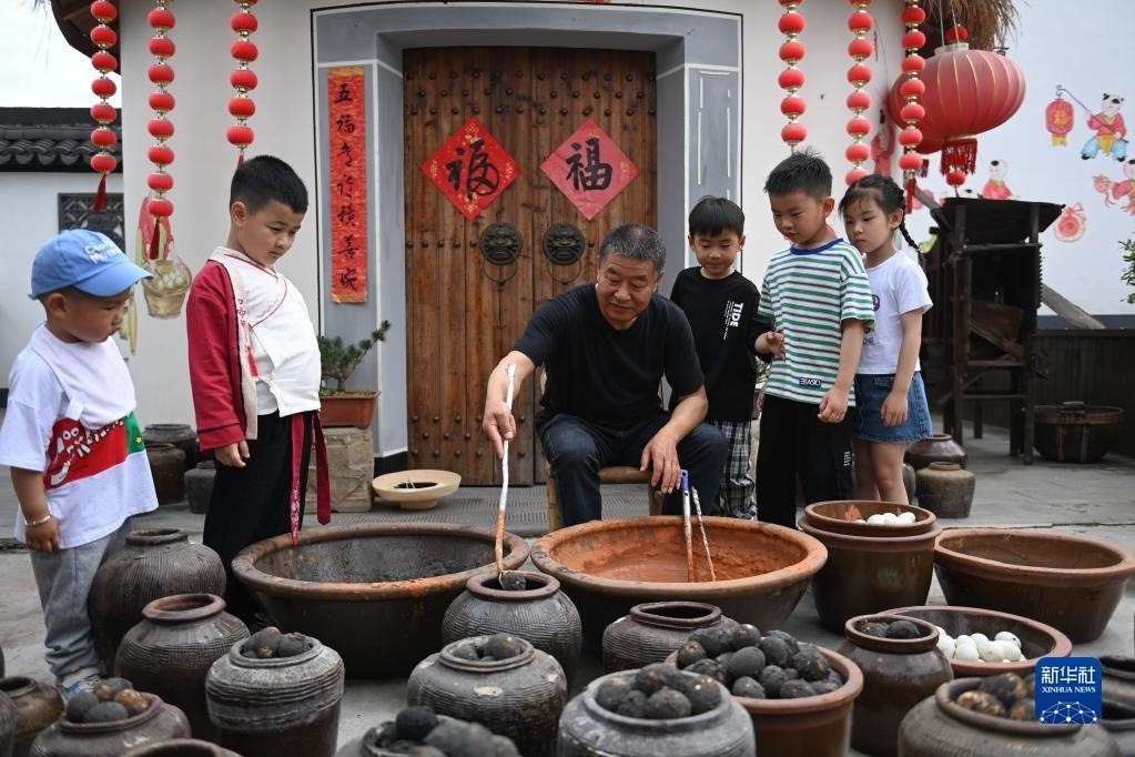 臨近立夏節(jié)氣,浙江省杭州市臨平區(qū)塘棲鎮(zhèn)丁山河村的村民們做米塑“立夏狗”、腌灰鴨蛋、搭土灶蒸“野米飯”等,用江南水鄉(xiāng)傳統(tǒng)的民俗迎接初夏。新華社記者 黃宗治 攝