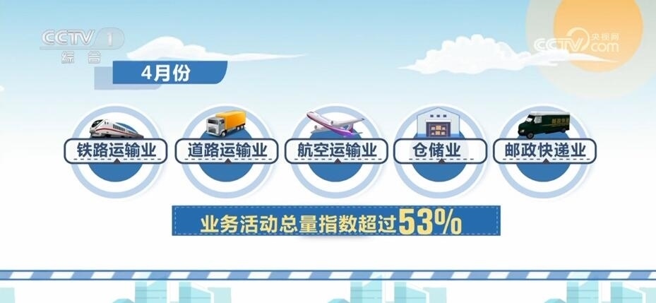 中國物流與采購聯(lián)合會5月4日公布,4月份中國物流業(yè)景氣指數為53.8%,繼續(xù)保持在擴張區(qū)間。部分行業(yè)的業(yè)務活動總量指數,保持在50%以上擴張區(qū)間。其中,鐵路運輸業(yè)、道路運輸業(yè)、航空運輸業(yè)、倉儲業(yè)和郵政快遞業(yè)超過53%。