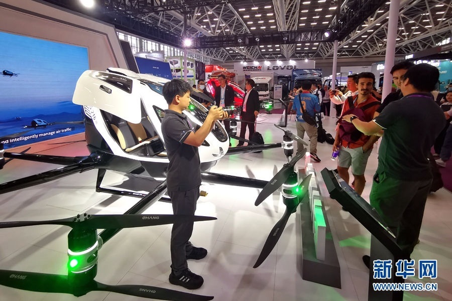 這是廣交會(huì)上展示的億航載人和運(yùn)輸無(wú)人機(jī)(4月15日攝)。新華網(wǎng) 盧鑒 攝