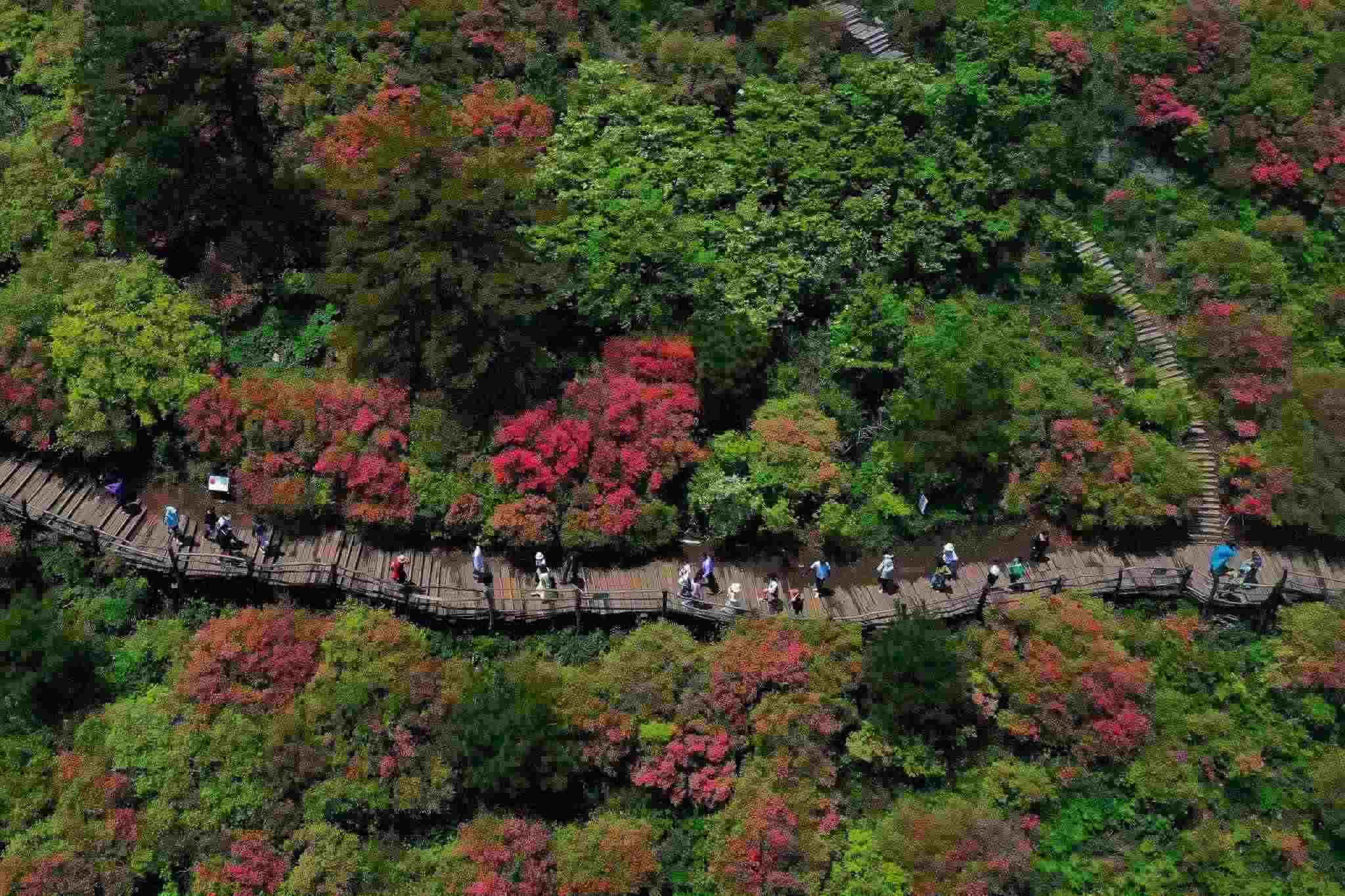 2023年5月5日,湖北黃岡,龜峰山杜鵑花綻放。視覺中國(guó)