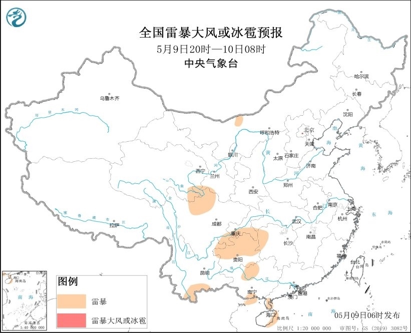 央視網(wǎng)消息:中央氣象臺(tái)網(wǎng)站5月9日發(fā)布強(qiáng)對(duì)流天氣預(yù)報(bào)。