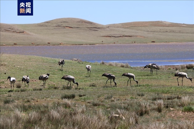 樂享美好生態(tài)!云南大山包19只黑頸鶴停留越冬地。