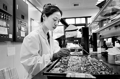 2022年8月7日,浙江農林大學現代農學院學生在實驗室開展科學研究。陳勝偉攝/光明圖片