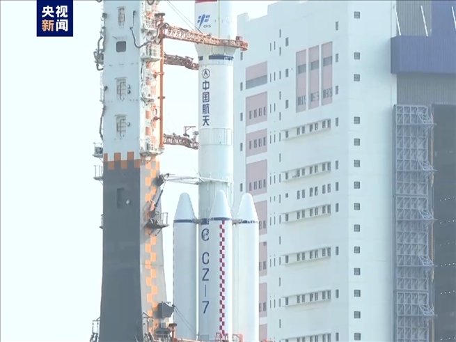 5月7日,在文昌航天發(fā)射場,天舟六號貨運飛船和長征七號遙七運載火箭組合體開始進行垂直轉運。