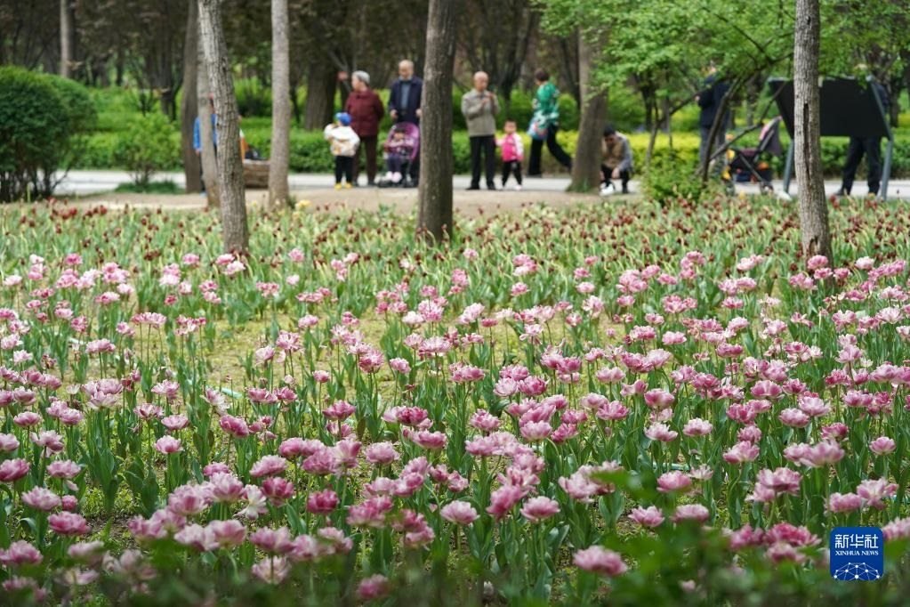 近日,山西省太原市迎澤公園內(nèi)各色郁金香競(jìng)相綻放,吸引游人前來(lái)觀花賞景。新華社記者 詹彥 攝