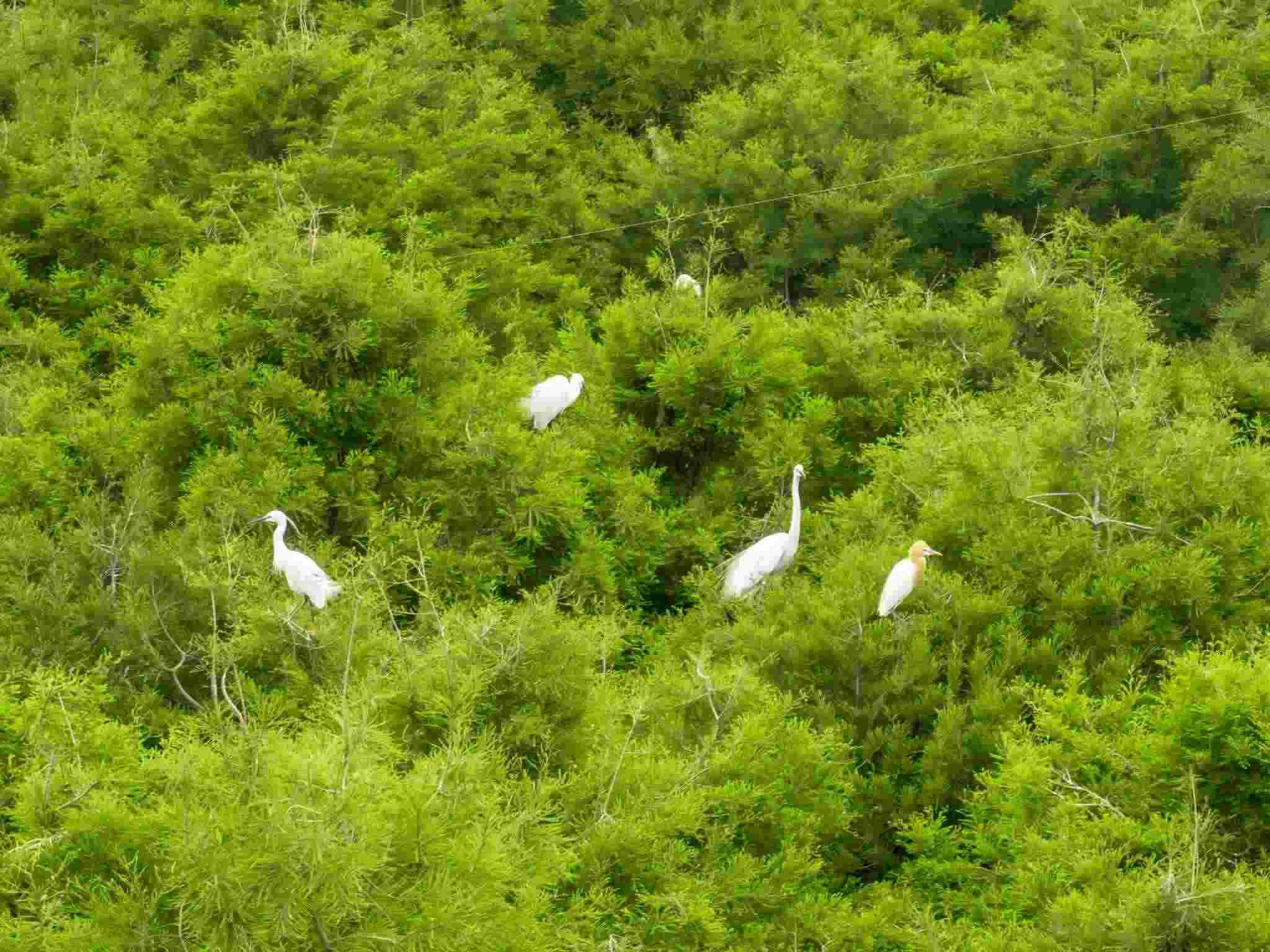 2023年5月11日,江蘇連云港,東海縣西雙湖濕地公園,上千只鷺鳥(niǎo)前來(lái)?xiàng)⒎毖?。視覺(jué)中國(guó)