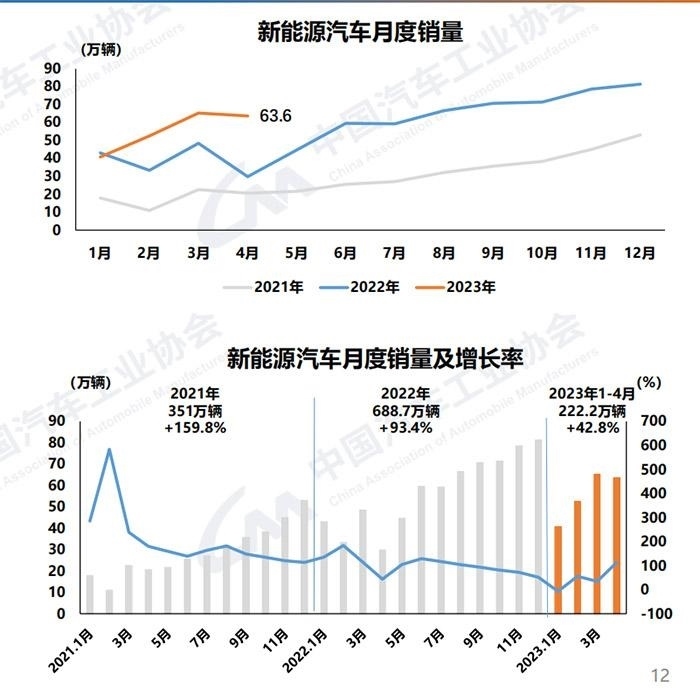 中新網(wǎng)5月11日電 (中新財(cái)經(jīng) 葛成)11日,中汽協(xié)發(fā)布汽車產(chǎn)銷數(shù)據(jù)。2023年4月,汽車產(chǎn)銷分別完成213.3萬輛和215.9萬輛,同比分別增長76.8%和82.7%;新能源汽車產(chǎn)銷分別完成64萬輛和63.6萬輛,同比均增長1.1倍;汽車企業(yè)出口37.6萬輛,同比增長1.7倍。
