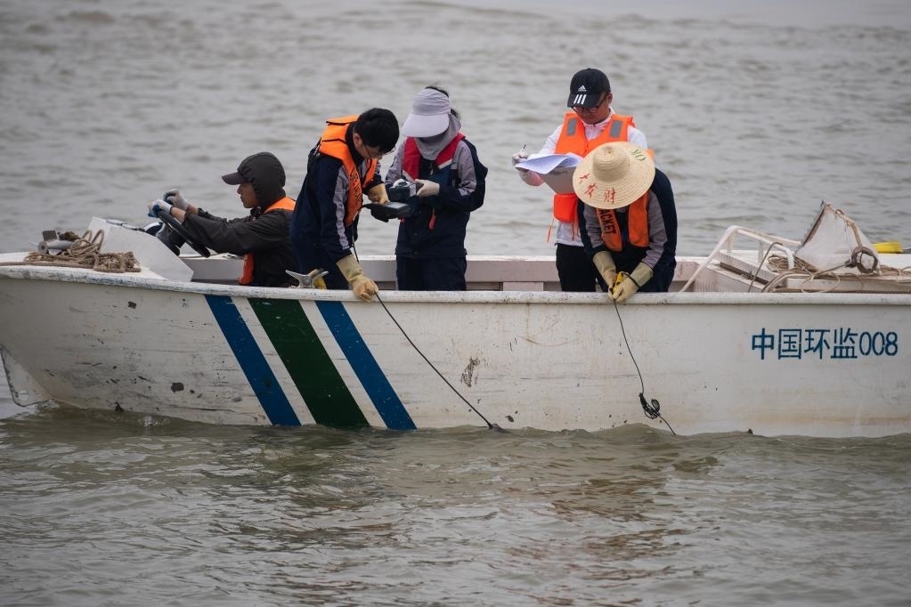 圖為監(jiān)測人員正在進行水生態(tài)環(huán)境現(xiàn)場參數(shù)測定。新華社記者肖藝九 攝