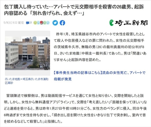 ·日本茨城縣牛久市一名26歲失業(yè)男子因不滿女友提分手,潛入女方家陽臺蹲守近8小時(shí),等她出來收衣服時(shí)將其殺害。