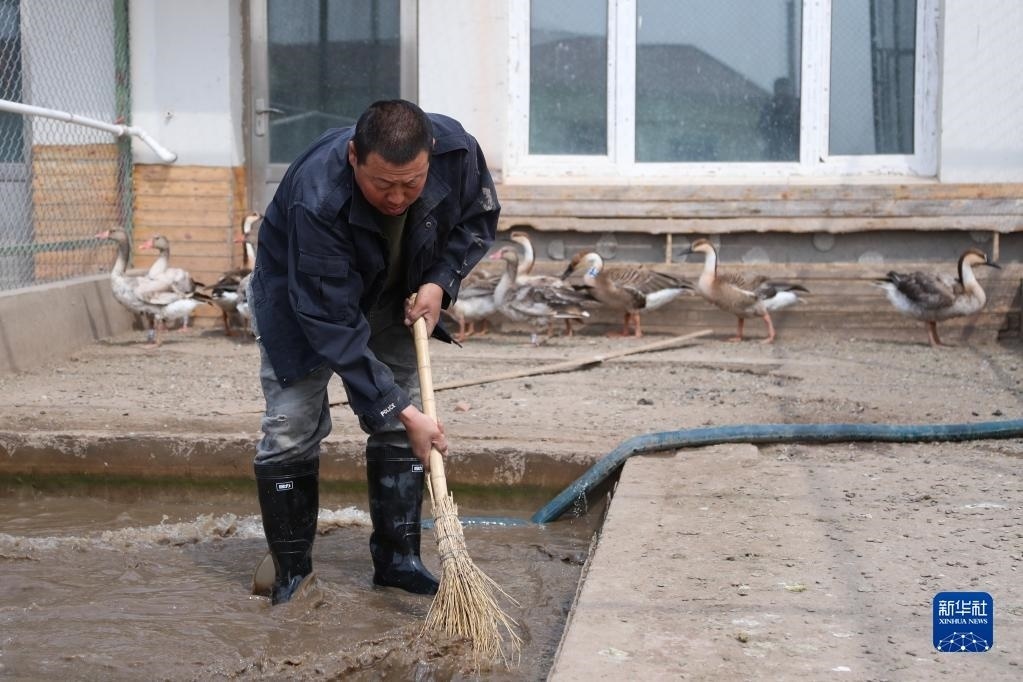 5月11日,徐沃德樂(lè)胡在清理水池。