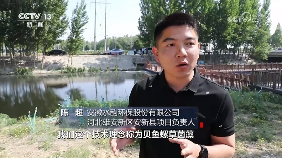 安徽水韻環(huán)保股份有限公司河北雄安新區(qū)安新縣項目負責人陳超:“水下是木樁搭的貝床。貝分為濾食性和刮食性,對水體里面浮游生物,尤其像菌藻類水里面的COD(化學需氧量)、氨氮、總磷,具有一定的消解作用。我們這個技術(shù)理念稱為貝魚螺草菌藻,也就是我們常說的大魚吃小魚、小魚吃蝦米,形成閉環(huán)生物鏈,讓這個水體自凈能力提升,能穩(wěn)定在三類到四類水?!?/p>