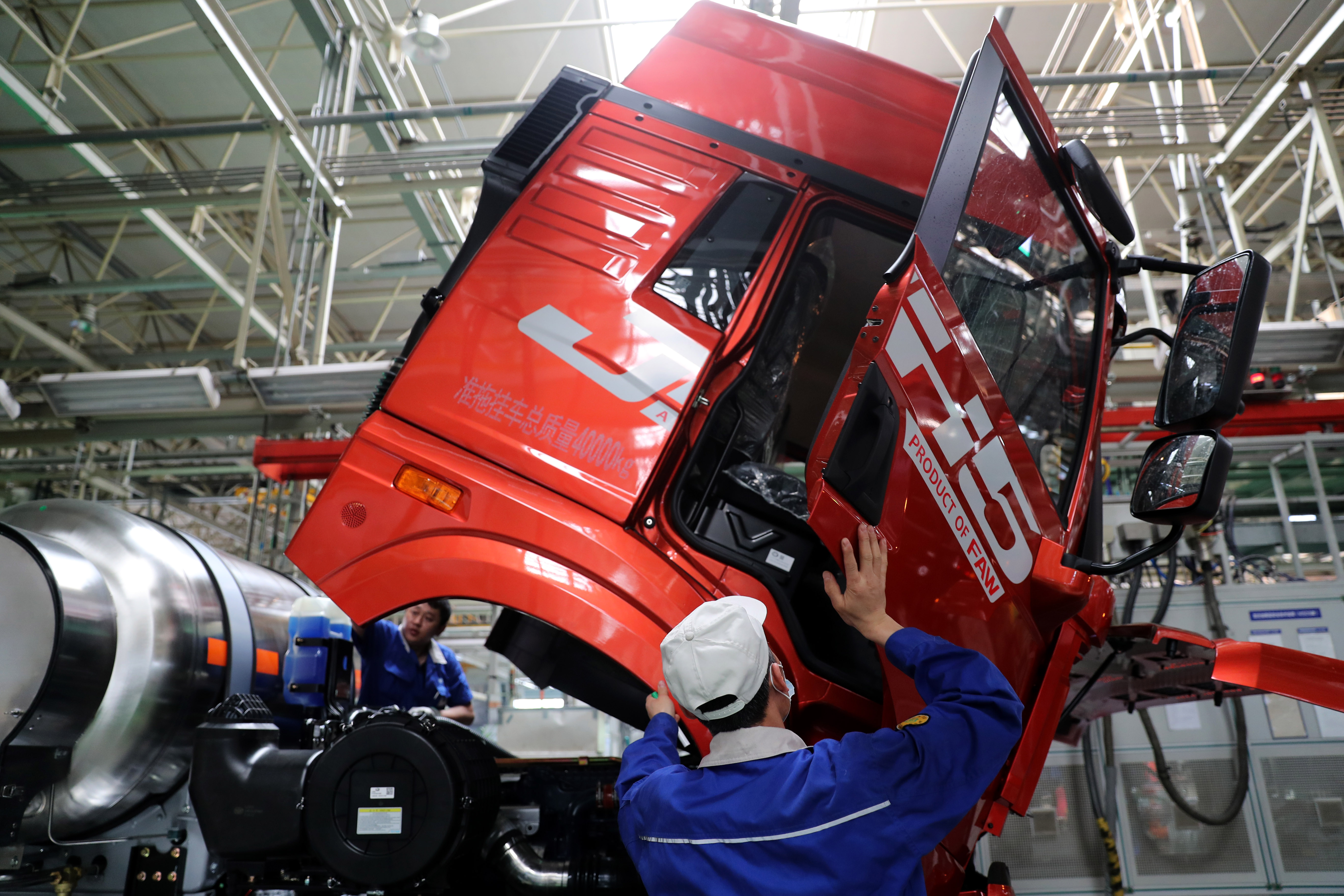 5月15日,在山東省青島市即墨區(qū)的青島汽車產(chǎn)業(yè)新城,汽車生產(chǎn)企業(yè)一片繁忙景象,工人們開足馬力趕訂單,滿足國內(nèi)外市場需求。