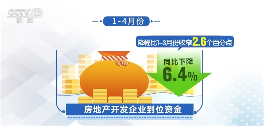 從房企資金看,受到市場(chǎng)銷售改善影響,房地產(chǎn)開(kāi)發(fā)企業(yè)資金緊張狀況有所緩解,1—4月份,房地產(chǎn)開(kāi)發(fā)企業(yè)到位資金同比下降6.4%,降幅比1—3月份收窄2.6個(gè)百分點(diǎn)。