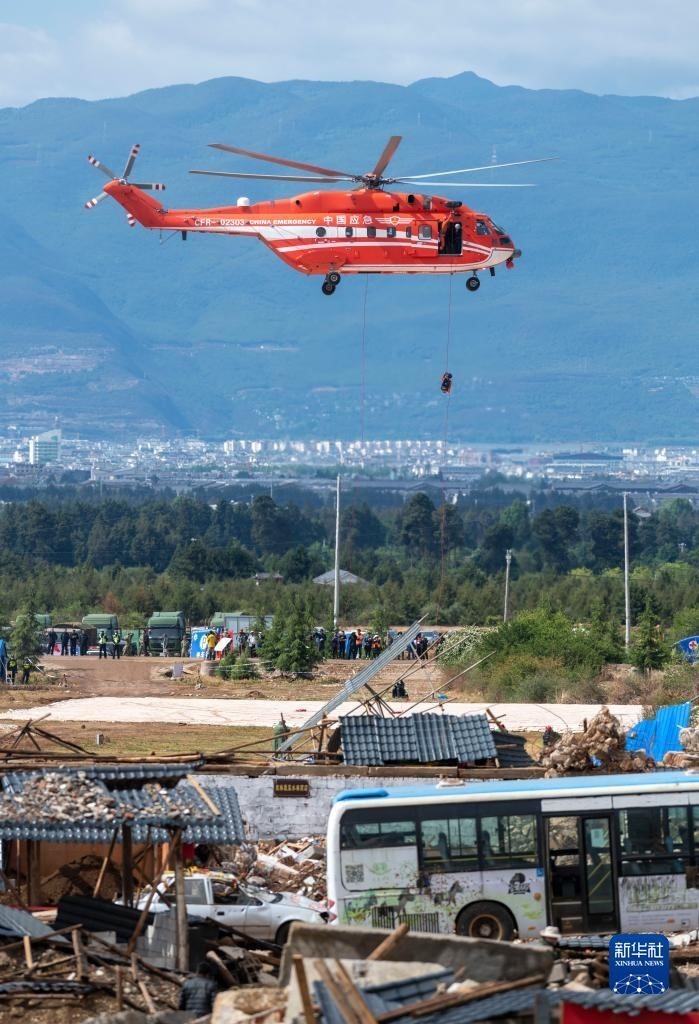 當(dāng)日,國務(wù)院抗震救災(zāi)指揮部辦公室、應(yīng)急管理部、云南省人民政府在云南麗江等地聯(lián)合舉行高山峽谷地區(qū)地震災(zāi)害空地一體化聯(lián)合救援演習(xí),代號“應(yīng)急使命·2023”。