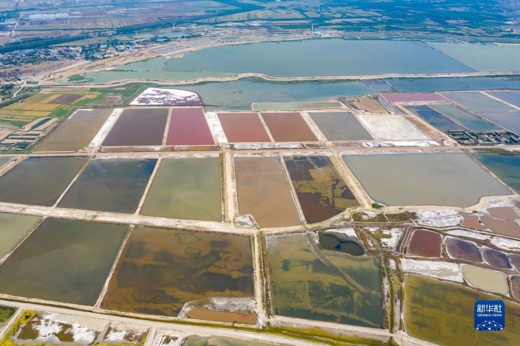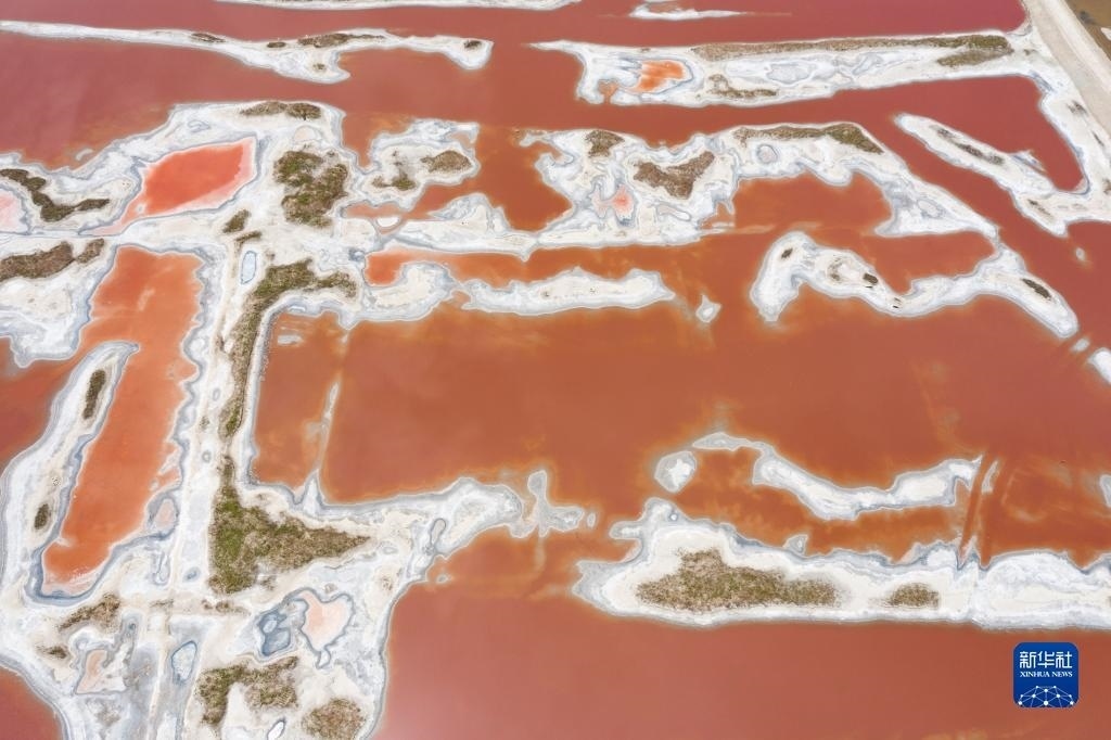 這是5月16日拍攝的運城鹽湖一景(無人機(jī)照片)。