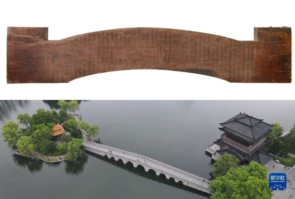 這是一張拼版照片,上圖為:《逍遙津木刻枋》,現(xiàn)收藏于安徽博物院(新華社發(fā),吳艷攝);下圖為:5月17日拍攝的位于安徽省合肥市的逍遙津公園(無(wú)人機(jī)照片,新華社記者張端攝)。