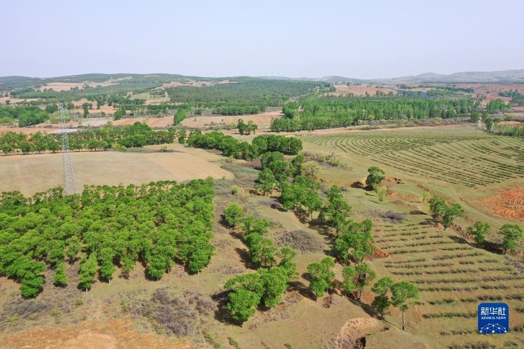 山西省右玉縣南山森林公園一角(5月18日攝,無人機(jī)照片)。