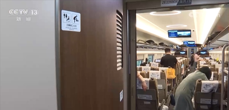 鐵路部門(mén)也推出了一系列無(wú)障礙服務(wù)舉措。由北京西開(kāi)往湖南邵陽(yáng)的G811次智能復(fù)興號(hào)動(dòng)車(chē)組,16節(jié)車(chē)廂中的第4號(hào)、第12號(hào)車(chē)廂的150個(gè)座位優(yōu)先提供給殘障旅客,也被稱作“無(wú)障礙車(chē)廂”,里面配備了更寬闊的通過(guò)門(mén)、無(wú)障礙衛(wèi)生間、輪椅放置區(qū)、盲文服務(wù)提示標(biāo)識(shí)等。