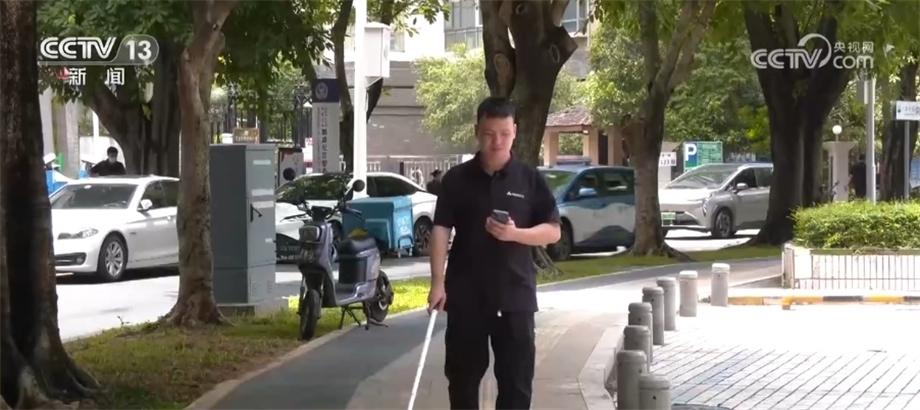 深圳市信息無障礙工程師 沈廣榮:在我們使用電子地圖過程中,我們偏離了導(dǎo)航的方向,地圖就會以震動的反饋告訴我們往什么方向偏離了什么角度,去提示我這個路線是錯的。用這個震動去模擬觸覺反饋,我們使用這個功能的時候就跟牽了一只導(dǎo)盲犬一樣。