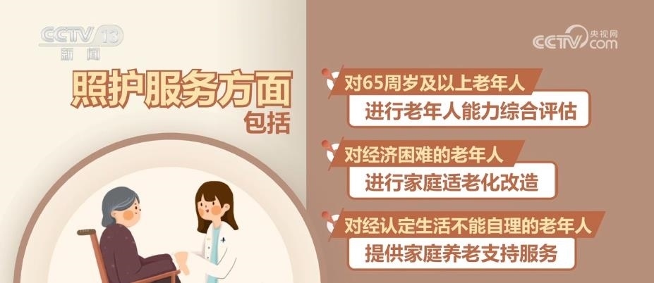 照護(hù)服務(wù)方面包括:對65周歲及以上老年人進(jìn)行老年人能力綜合評估;對經(jīng)濟(jì)困難的老年人進(jìn)行家庭適老化改造;對經(jīng)認(rèn)定生活不能自理的老年人提供家庭養(yǎng)老支持服務(wù);對特困老年人進(jìn)行集中供養(yǎng)或者分散供養(yǎng);對國家和社會作出特殊貢獻(xiàn)的老年人提供集中供養(yǎng)服務(wù);計(jì)劃生育特殊家庭老年人優(yōu)先享受機(jī)構(gòu)養(yǎng)老。