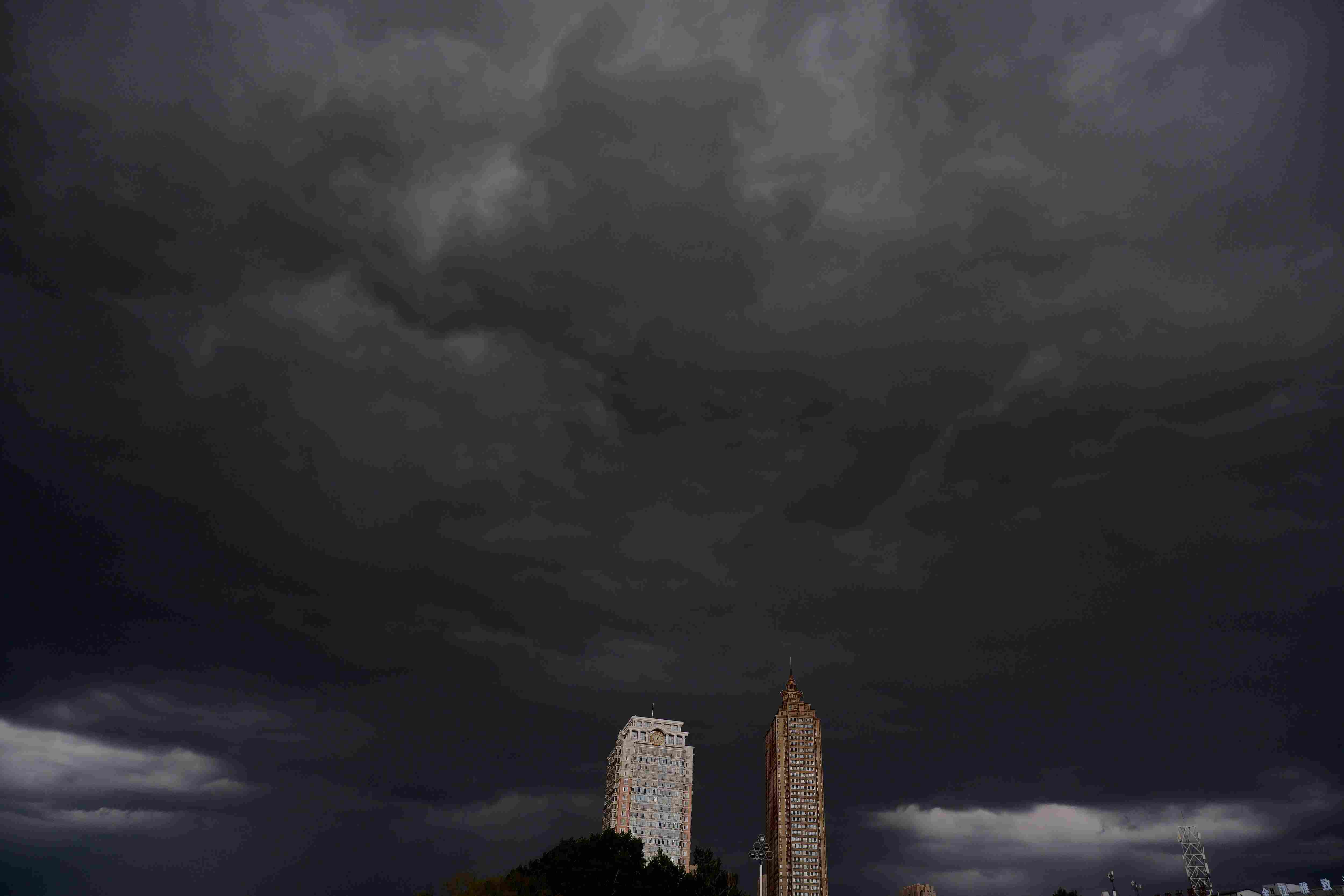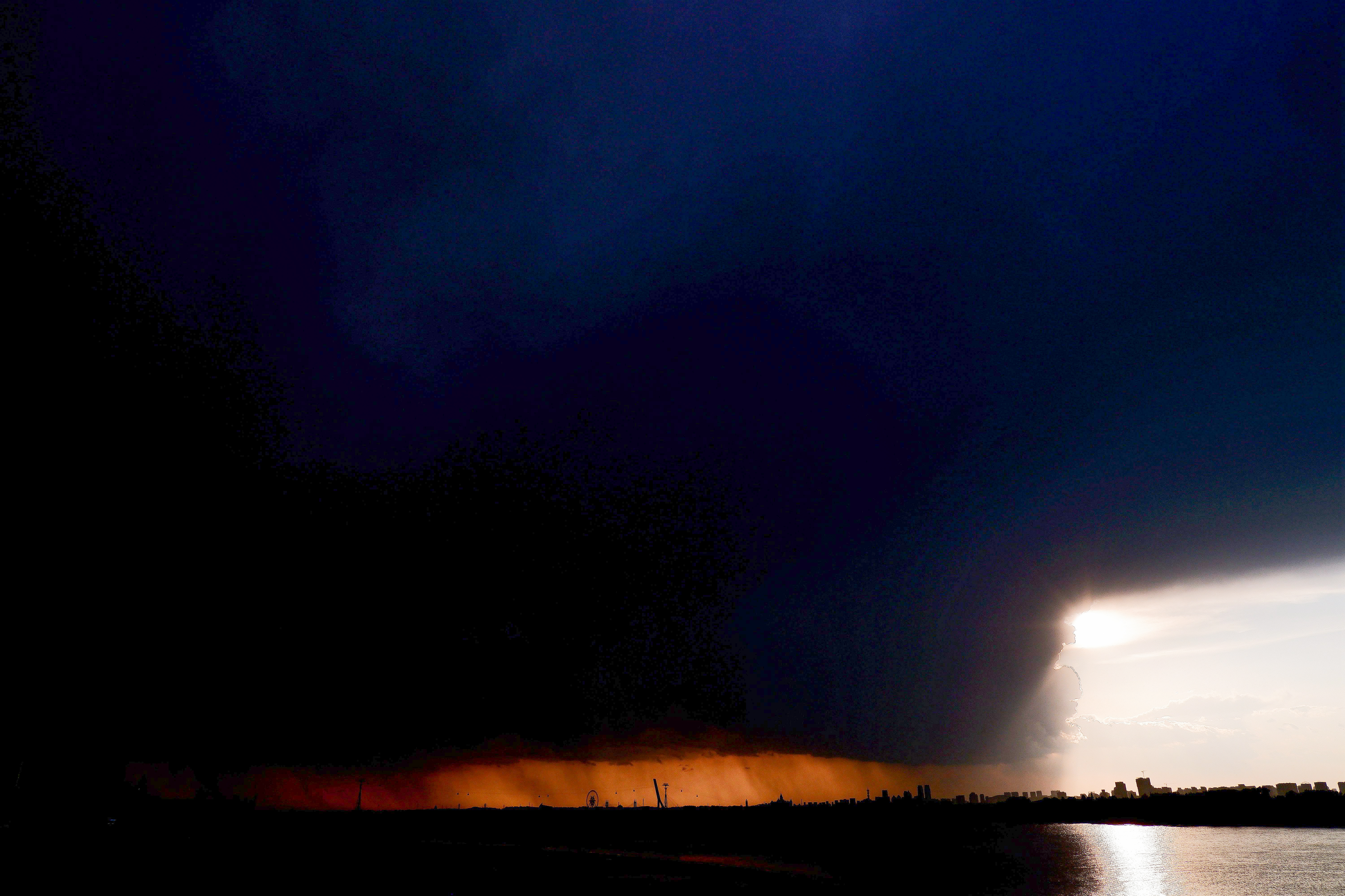 5月21日下午,黑龍江省哈爾濱市迎來強(qiáng)降雨天氣,整座城市被雷暴云籠罩,白晝?nèi)缫梗鹑缟涎菘苹么笃? (吳胡荼 攝)