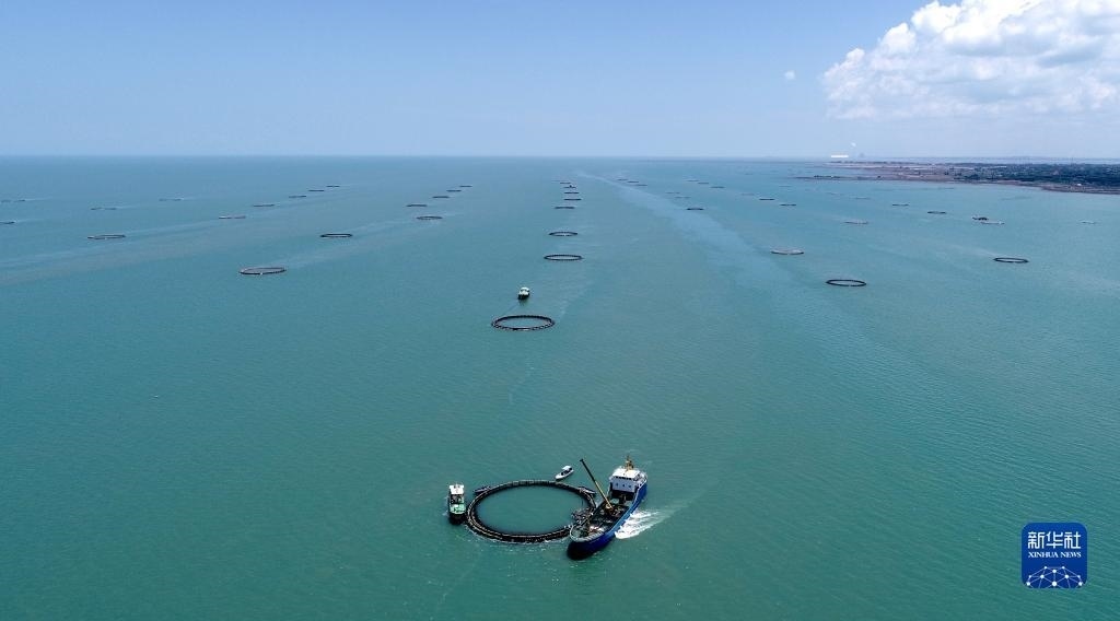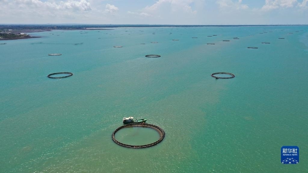 湛江徐聞西連鎮(zhèn)的“海上牧場(chǎng)”(5月27日攝,無人機(jī)照片)。