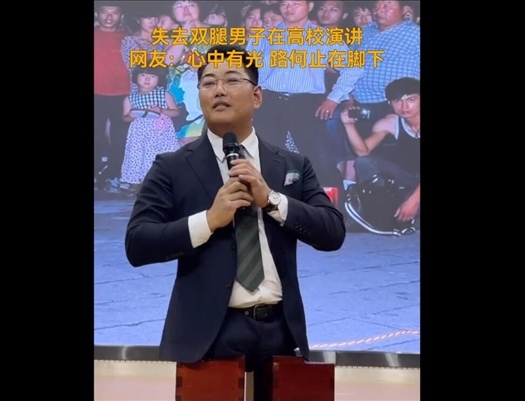 近日,山東臨沂,失去雙腿的男子在高校演講。據悉,該男子名叫陳州,是世界上第一個用雙手登頂五岳的人。網友:心中有光,路何止在腳下。